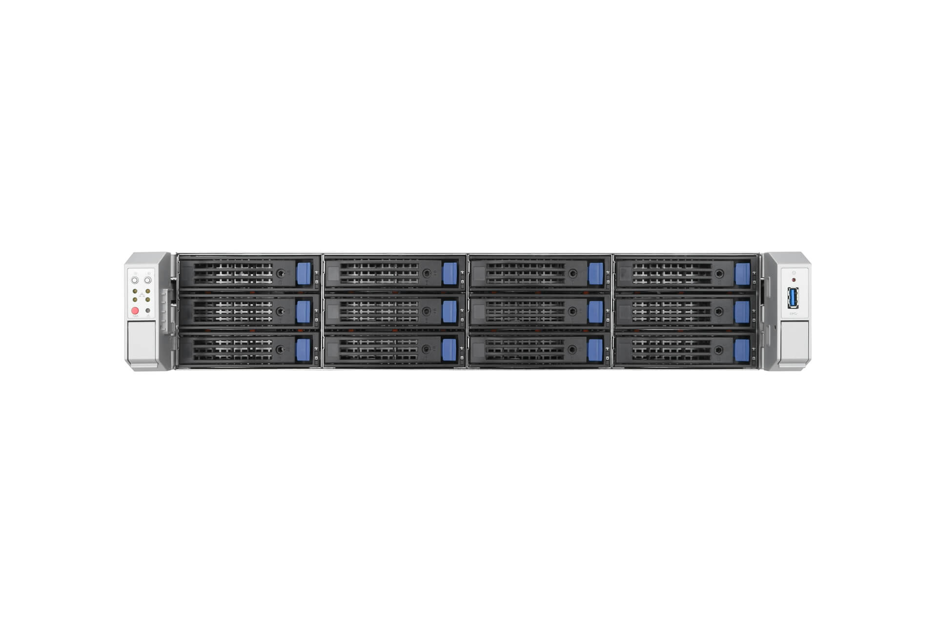 - External 2.5″/3.5″ x 12 hot-swap HDD trays with lock supported